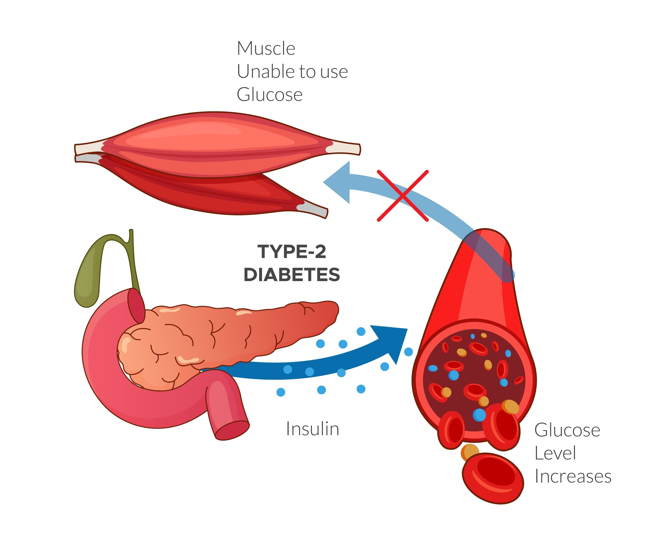 Type 2 diabetes occurs when the body’s cells become resistant to insulin, a hormone that helps absorb sugar from the blood. This leads to high blood sugar, which over time can damage nerves, blood vessels and organs.